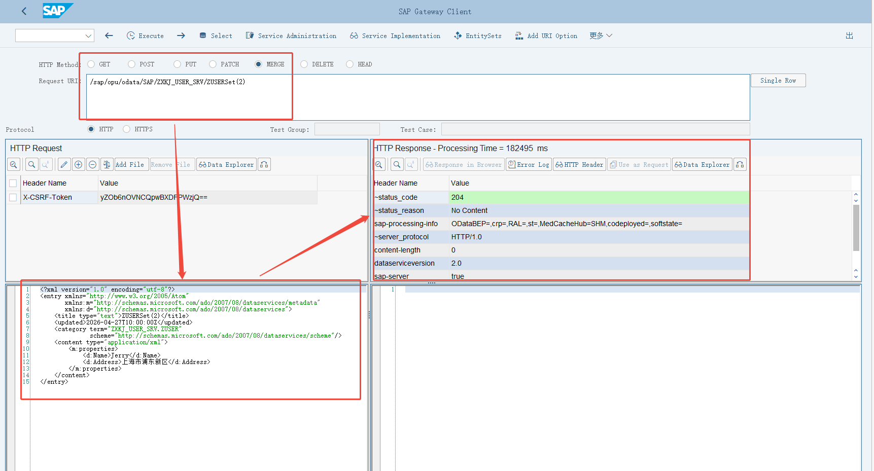 在 SAP Gateway(OData V2)中,通常使用 MERGE 作为默认的部分更新方法,也支持 PUT 。具体支持情况可以通过