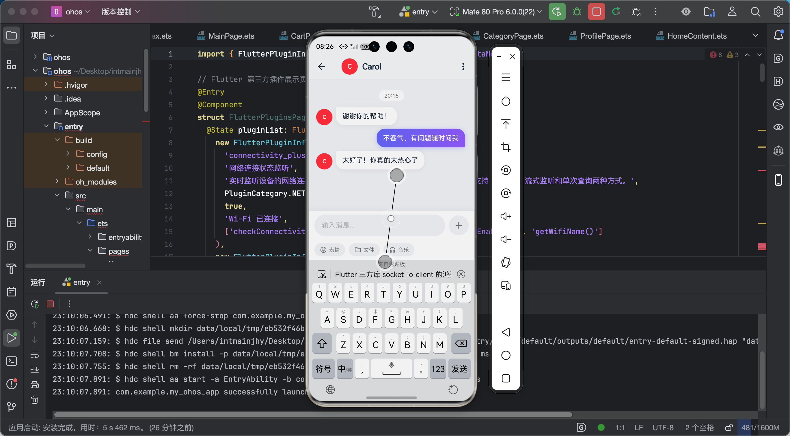 AtomGit 适配说明:Socket.IO 基于 WebSocket 实现,在鸿蒙上兼容性较好,核心功能均可正常使用。