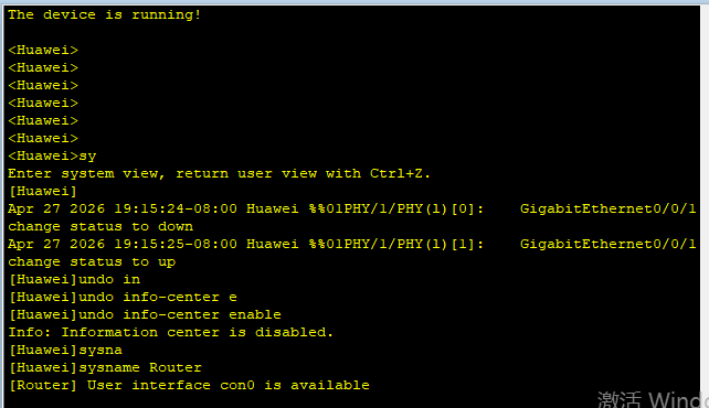 Apr 27 2026 19:15:25-08:00 Huawei %%01PHY/1/PHY(l)[1]: GigabitEthernet0/0/1: