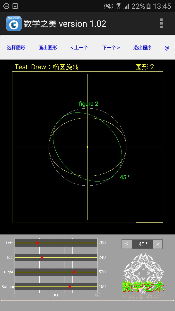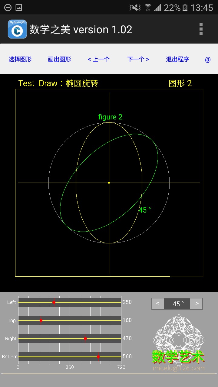 若设置角度值 d 就可以实现椭圆旋转图形的画出。