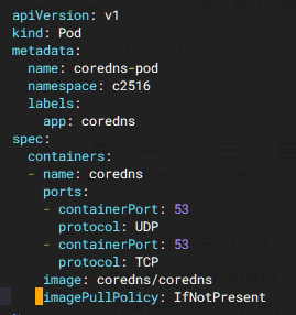 image: coredns/coredns #官方维护的 CoreDNS 容器镜像