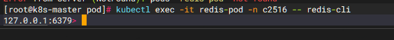 验证:kubectl exec -it redis-pod -n c2516 -- redis-cli