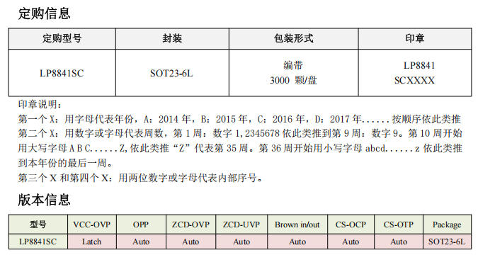| 主控IC | LP8841SC | PSR原边控制 |