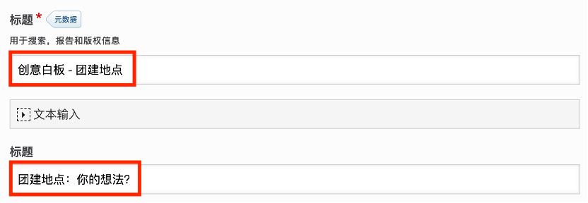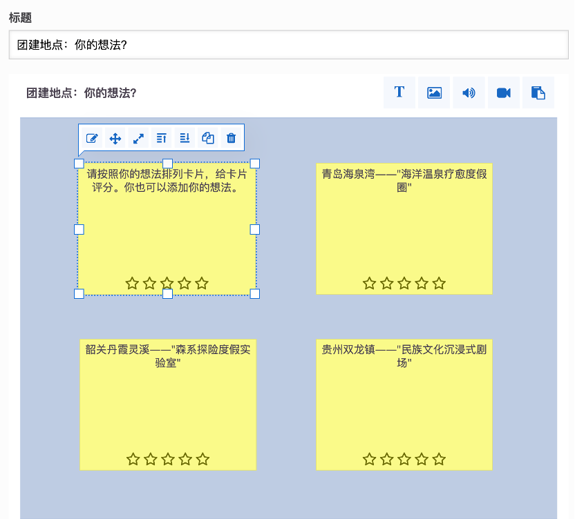 - 进入编辑界面开始配置,在 标题 字段填写如:团建地点:你的想法? 或课程主题。