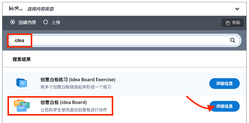 - 在内容类型列表中选择 『创意白板』 或搜索 Idea