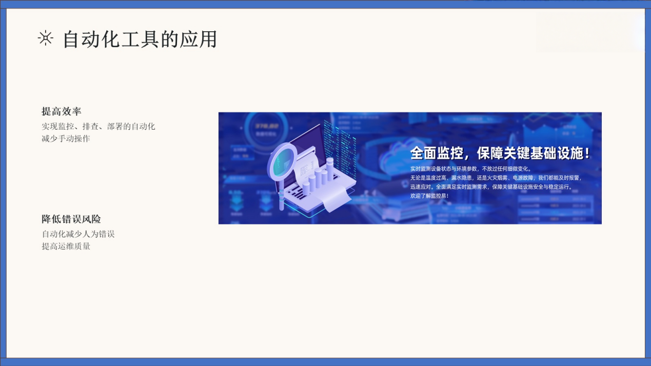但这不是为了偷懒。我认识的一个运维经理说,他们最大的变化是,团队终于有时间去做架构优化和应急预案演练了,而不是整天陷在重复的巡检和救火里。这才是技术该有的样子------不取代人,而是让人摆脱低效劳动,去思考更重要的事。