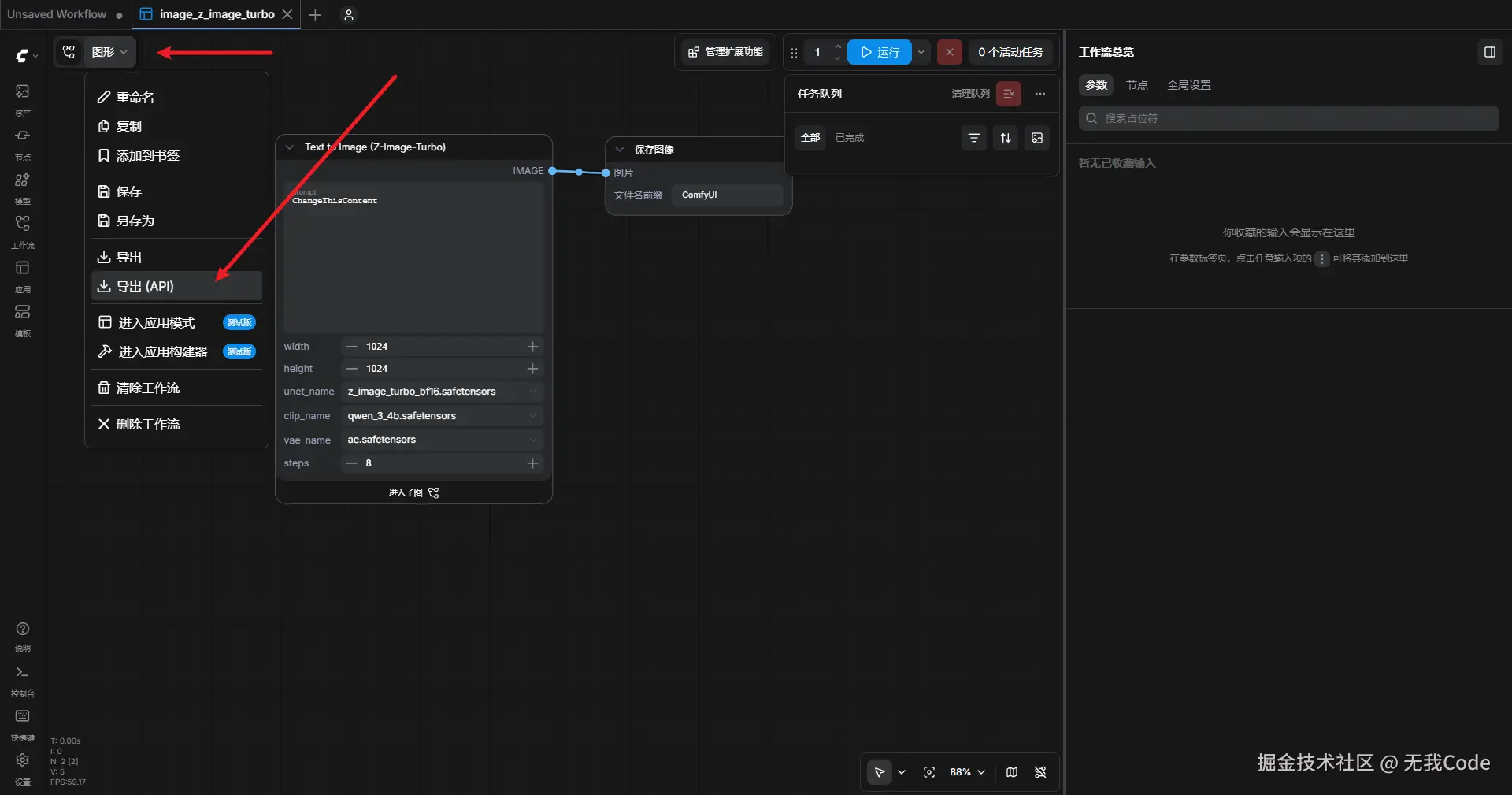 导出自己想用的工作流API