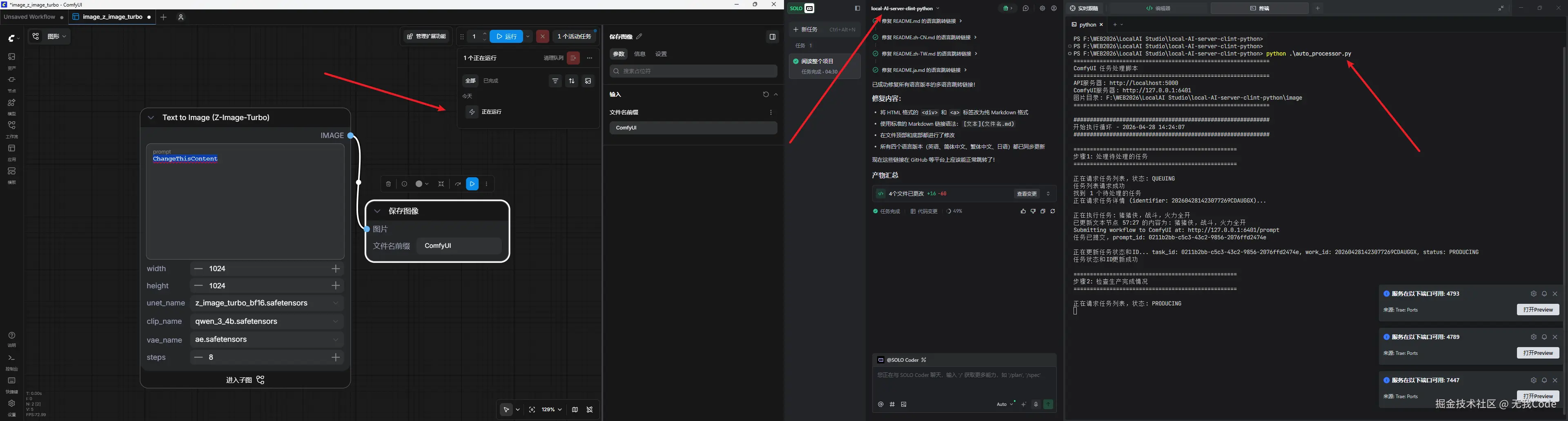 说明,这里记得要启动local-AI-server-clint-python 的auto_processor.py脚本跟打开ComfyUI