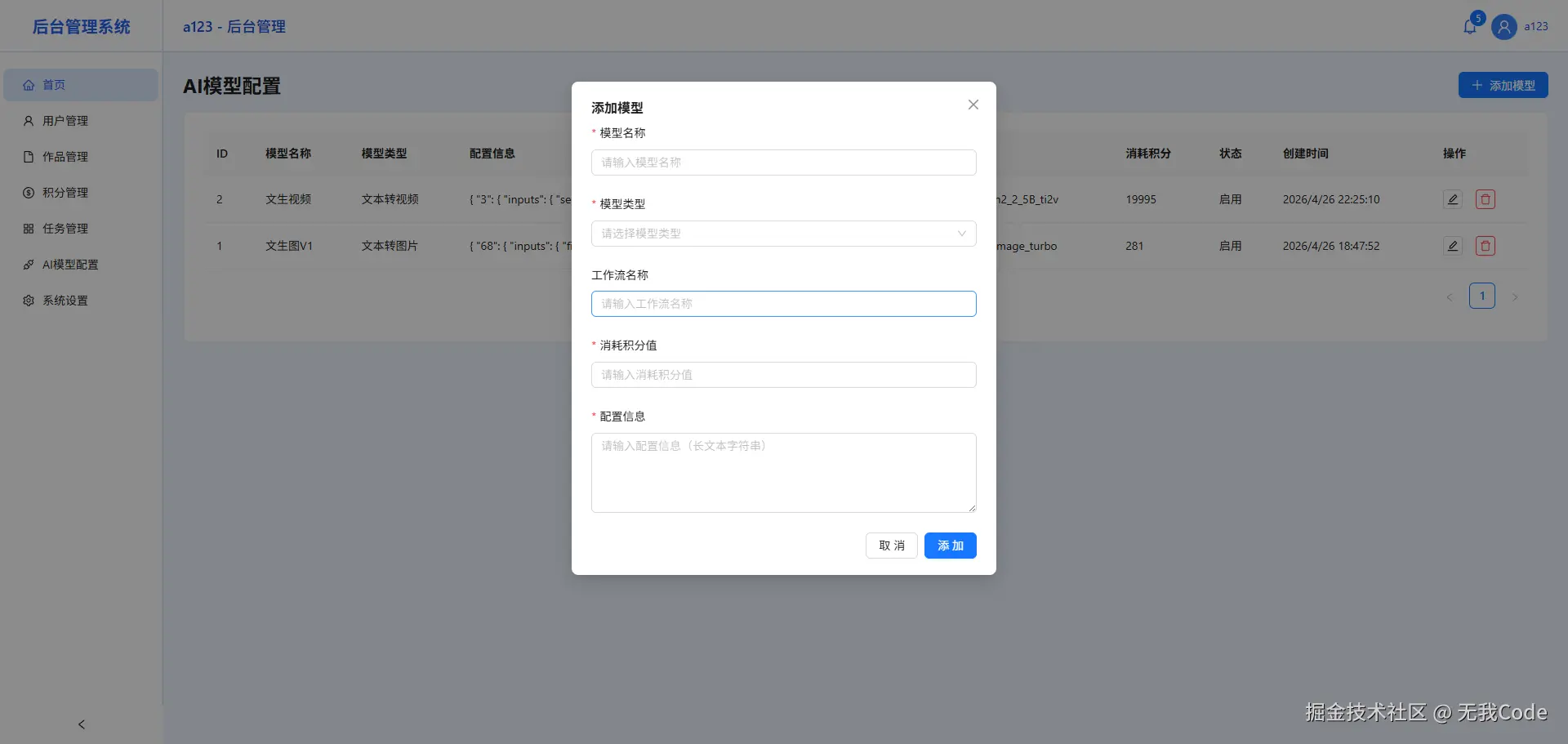 后端管理端配置大模型配置信息