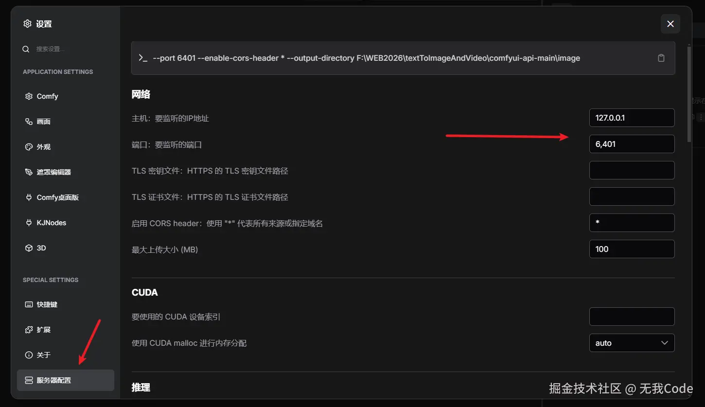 设置ComfyUI服务器配置