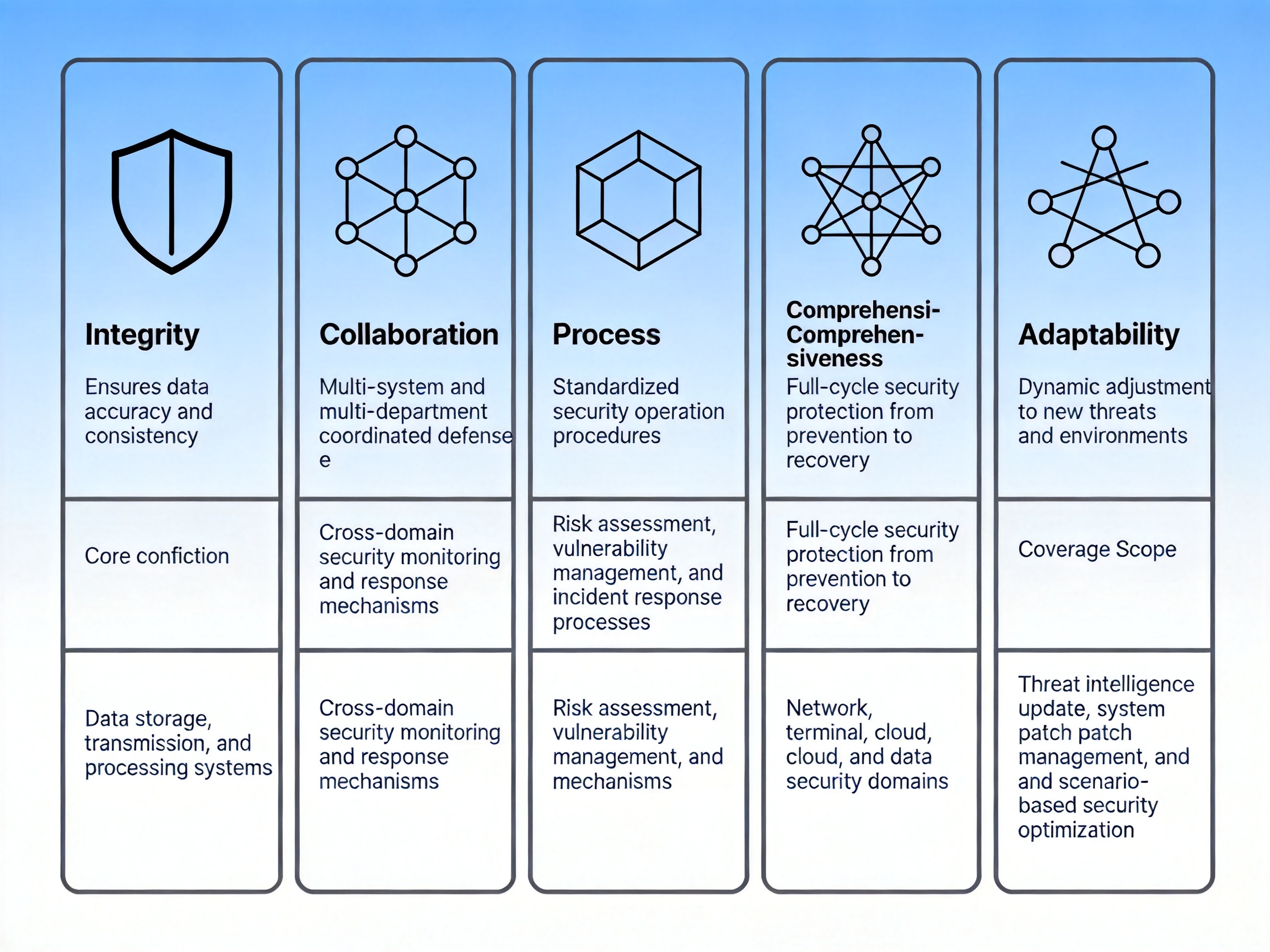 强调从组织全局和长期发展视角规划安全能力,实现人员、信息系统、物理设施、物联网设备的一体化保护,避免出现 "重技术轻管理、重核心系统轻边缘节点" 的不平衡问题。例如某省级政务云建设中,将业务系统、运维人员、终端设备、感知终端全部纳入统一安全体系,实现防护对象无遗漏。