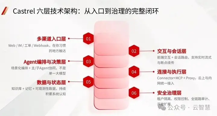云智慧 Castrel AI 以 "Hands Off,Always On" 为核心理念,构建了**"大脑+感官+手"的全栈能力体系,**具备三大核心优势: