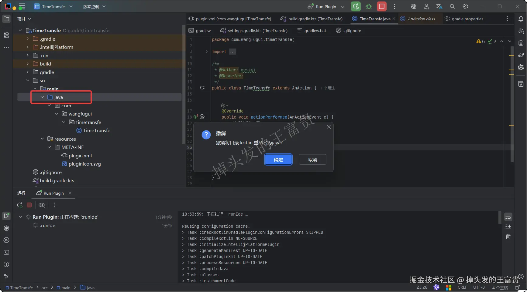 AnAction是一个类,我们想要自己做一些事件则需要继承该类,然后实现对应的方法,例如作者想做一个输入一个时间戳就装换为可视化的时间格式出来,所以我们需要写一个类继承AnAction类,然后实现它的一个方法: