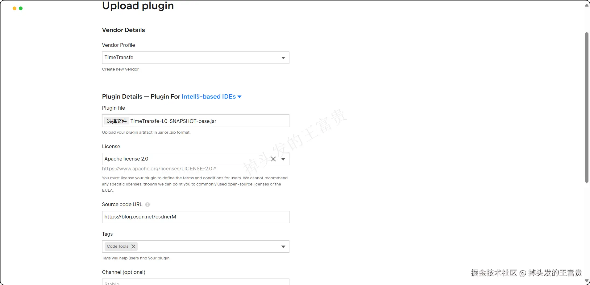 把我上面libs文件夹里面的jar包上传上去,填写许可证,主页等信息