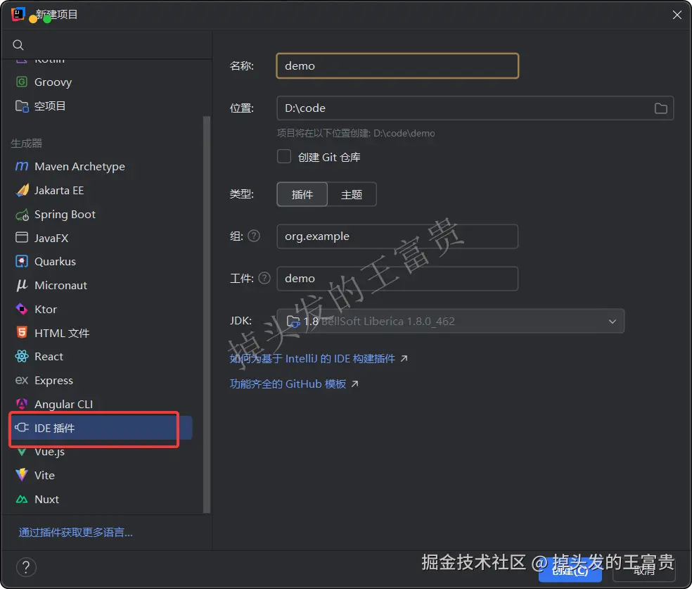 这个插件的目的是让我们能够在新建项目的时候选择IDE插件 这个选项。如果没有这个插件,那么我们在新建项目的时候就选择不了IDE插件。