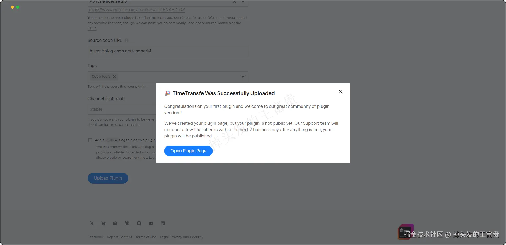 当出现这个提示的时候,则说明你的插件已经等待审核了,等几天就可以搜索到你的插件了