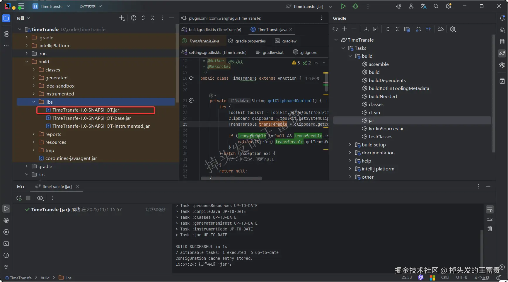 双击上面的按钮之后我们在项目当前目录的build的libs目录下面就会有一个和下面图中一样的jar包: