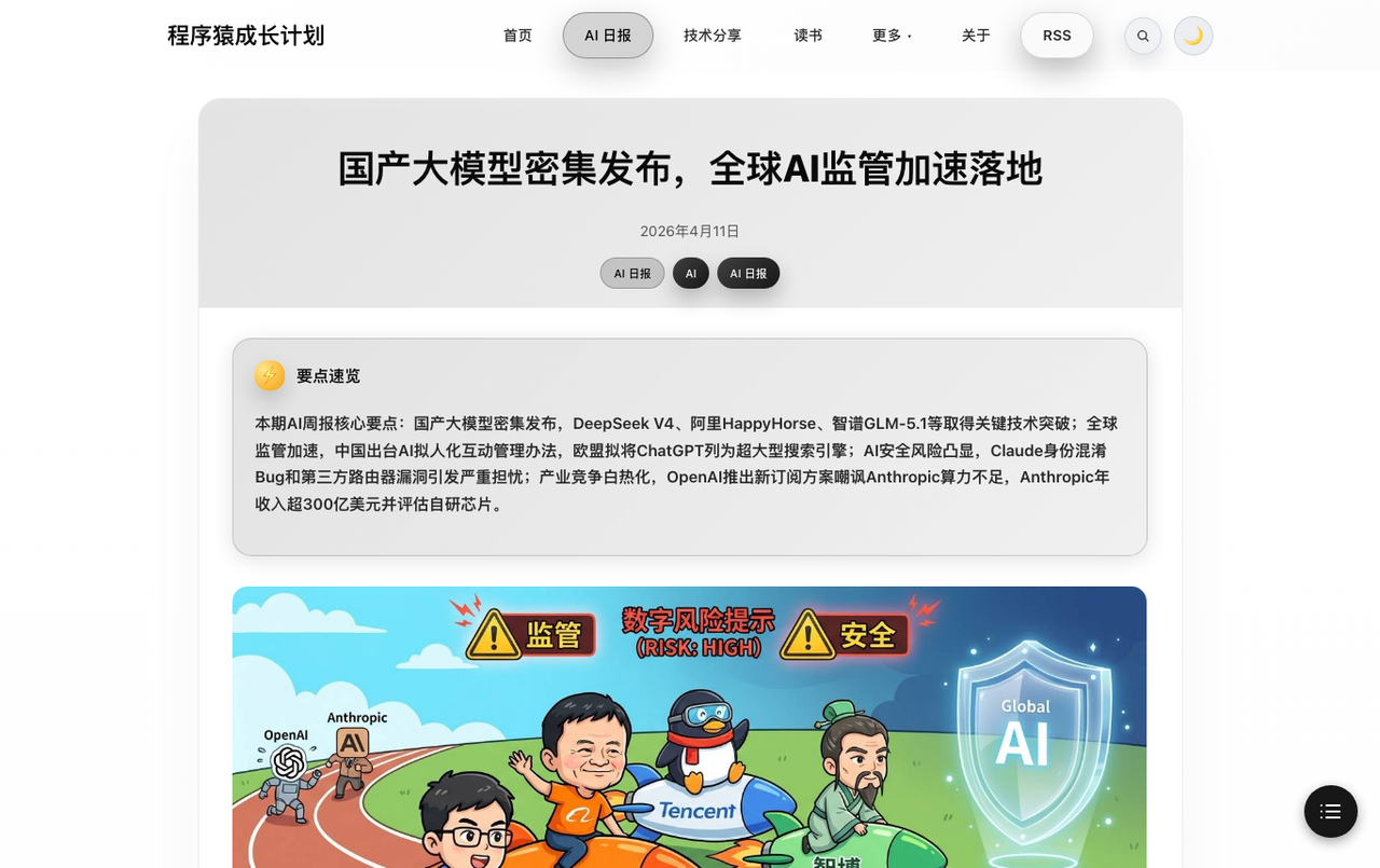链接 :AI Code · 国产大模型密集发布,全球 AI 监管加速落地(2026-04-10)