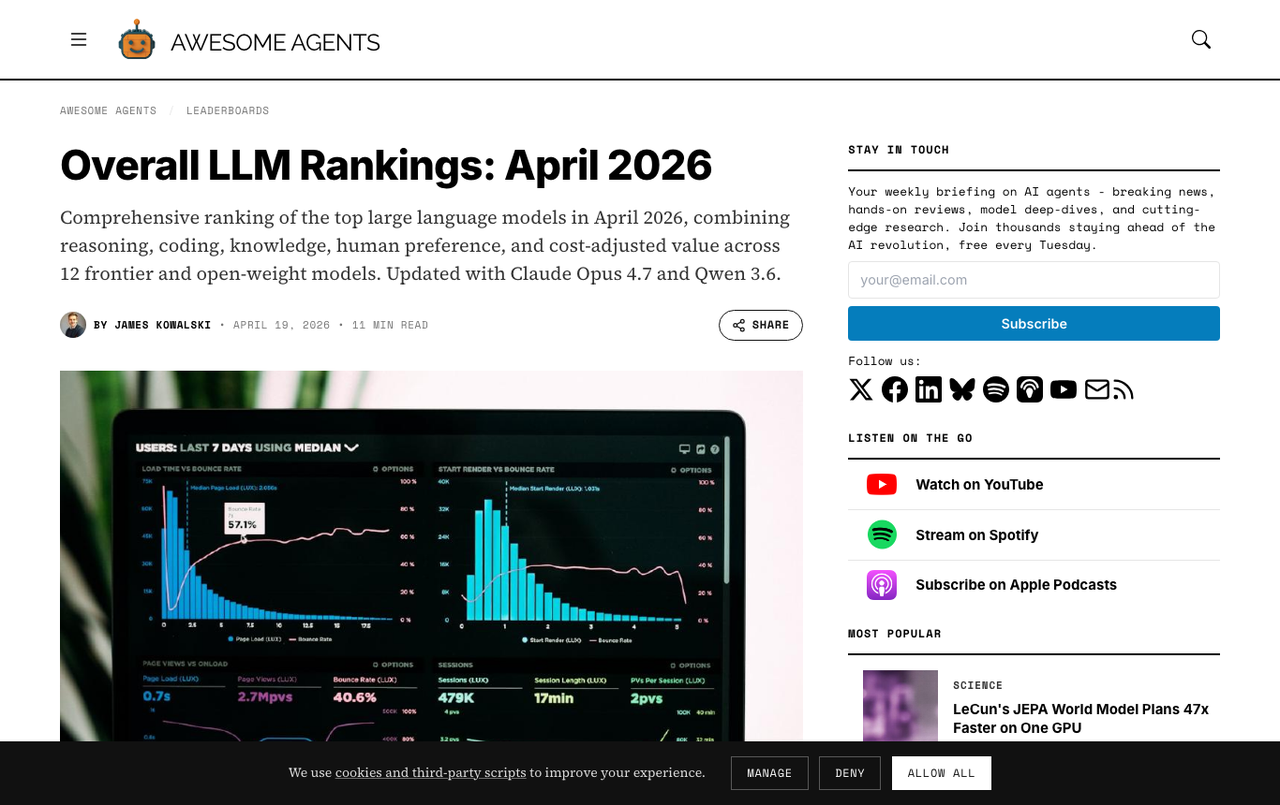 链接 :Awesome Agents · Overall LLM Rankings April 2026