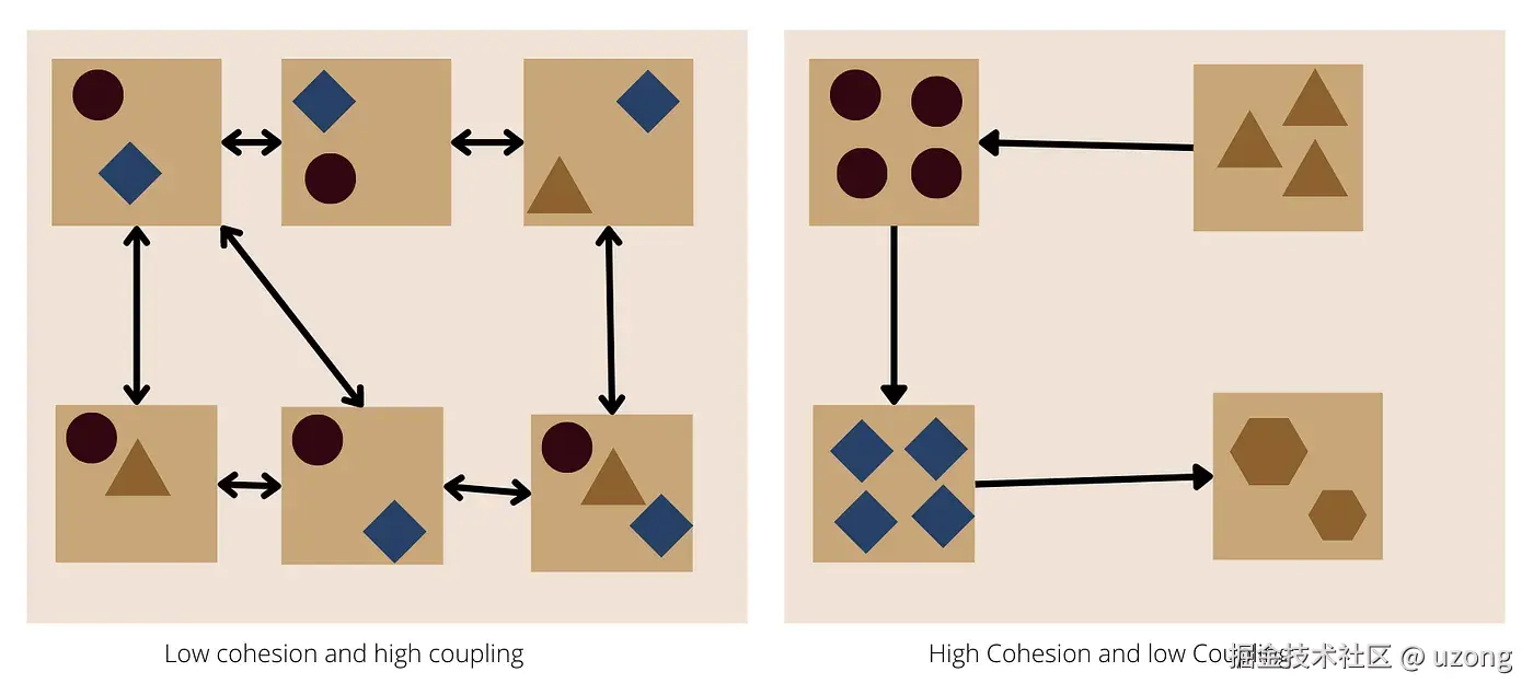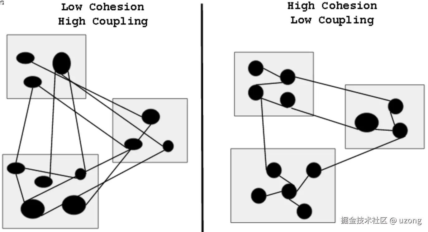 所谓高内聚,指的是模块内部的功能应该高度相关,并围绕同一个目标展开。换句话说,一个模块应该只做一件事情。在实际项目中,很多问题都是因为模块职责不清导致的。