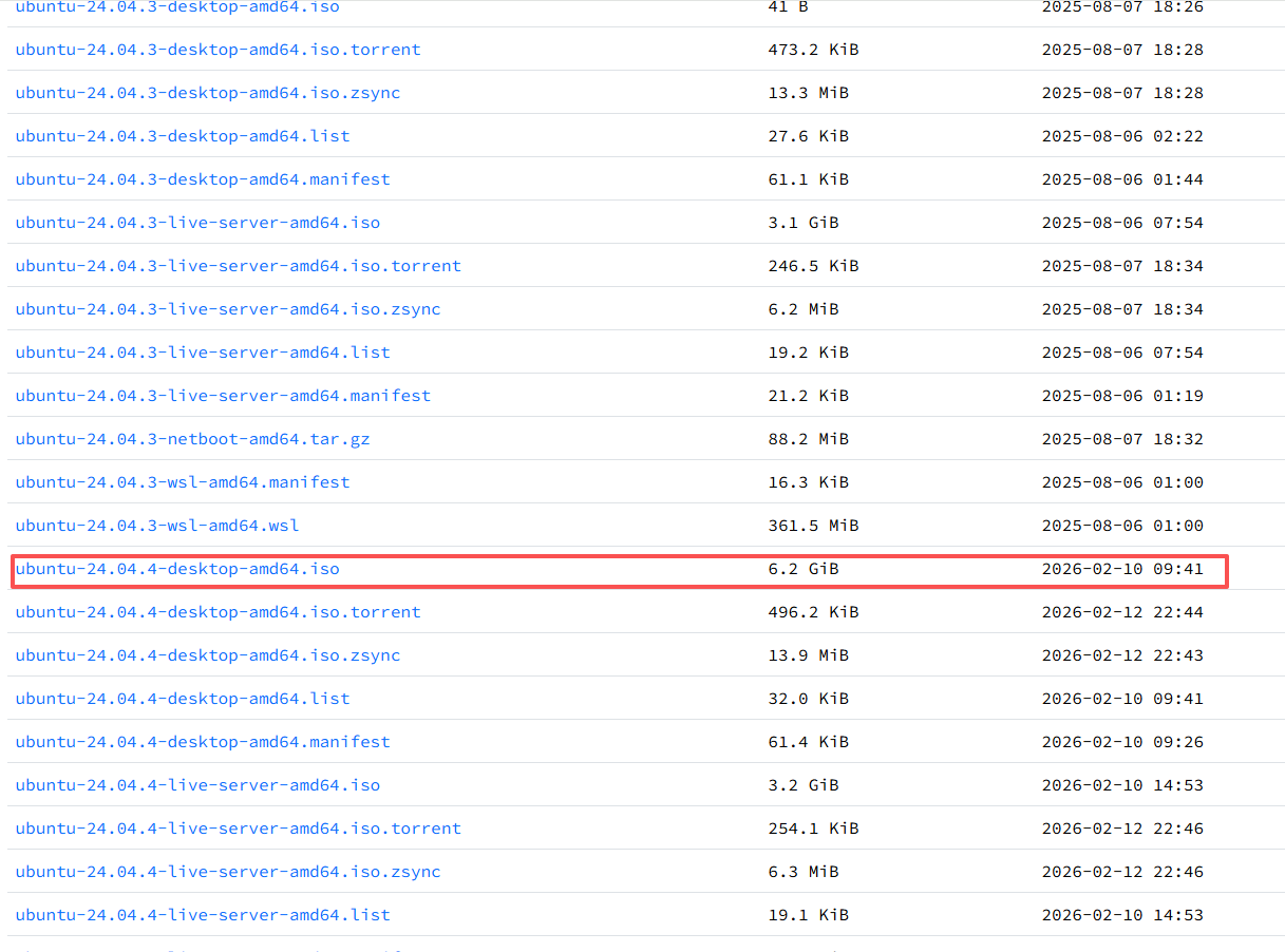 笔者下载的版本是24.04,如下图所示,读者可根据自己需求选择合适版本下载。