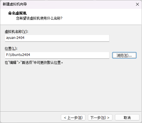 - 虚拟机名称和位置,自定义即可。
