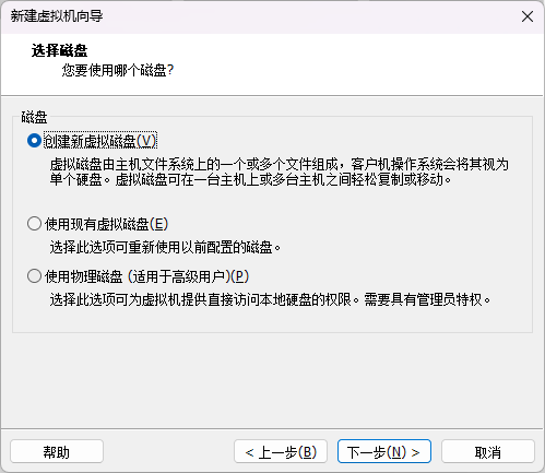 - 选择磁盘:创建新虚拟磁盘