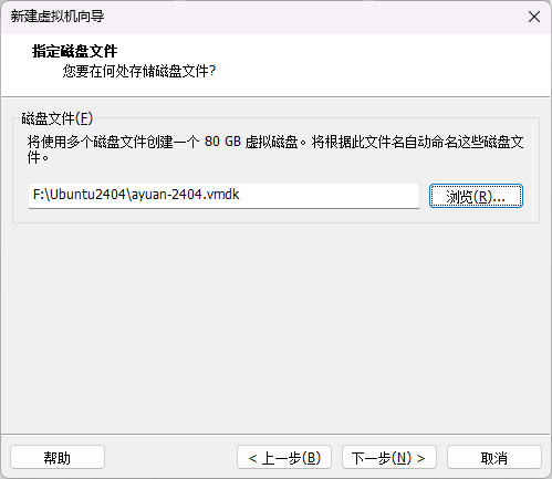 - 这里是虚拟磁盘文件的存储位置。建议跟虚拟机放在一个文件夹中,方便后续打包迁移。