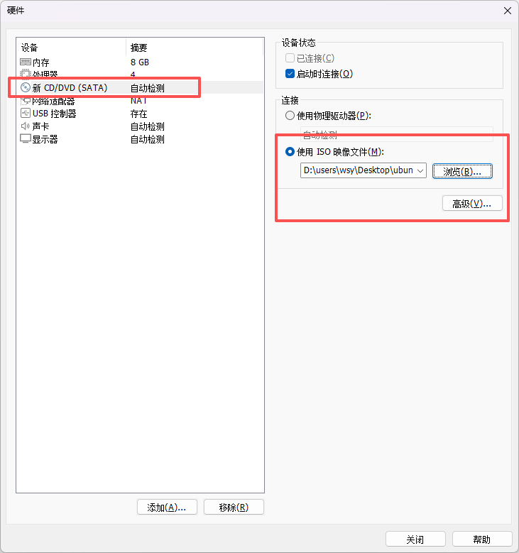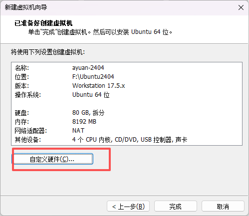 - 点击自定义硬件,导入第一步我们下载的Ubuntu镜像文件。
