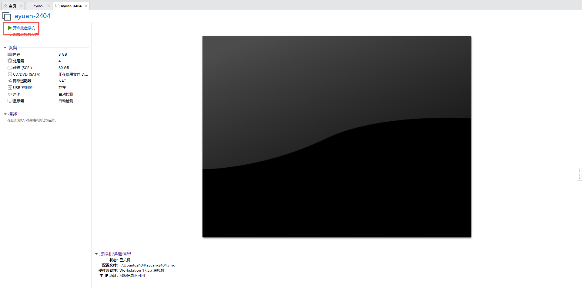 - 点击开启虚拟机开机。