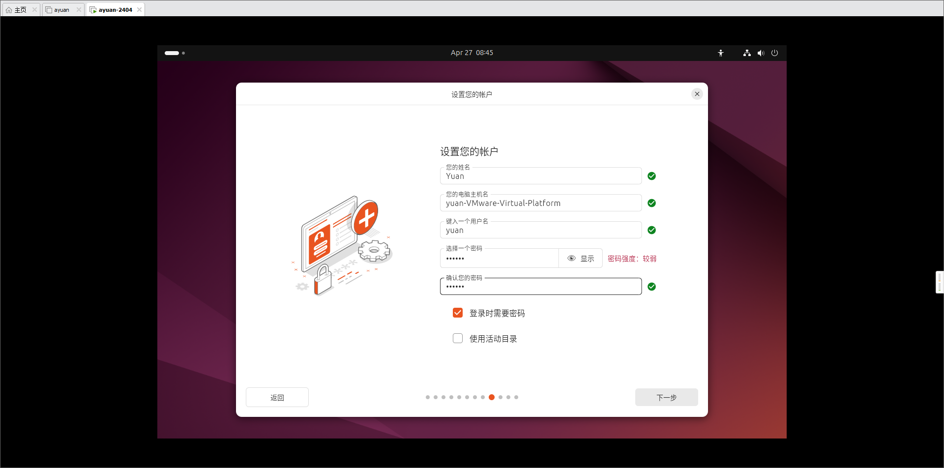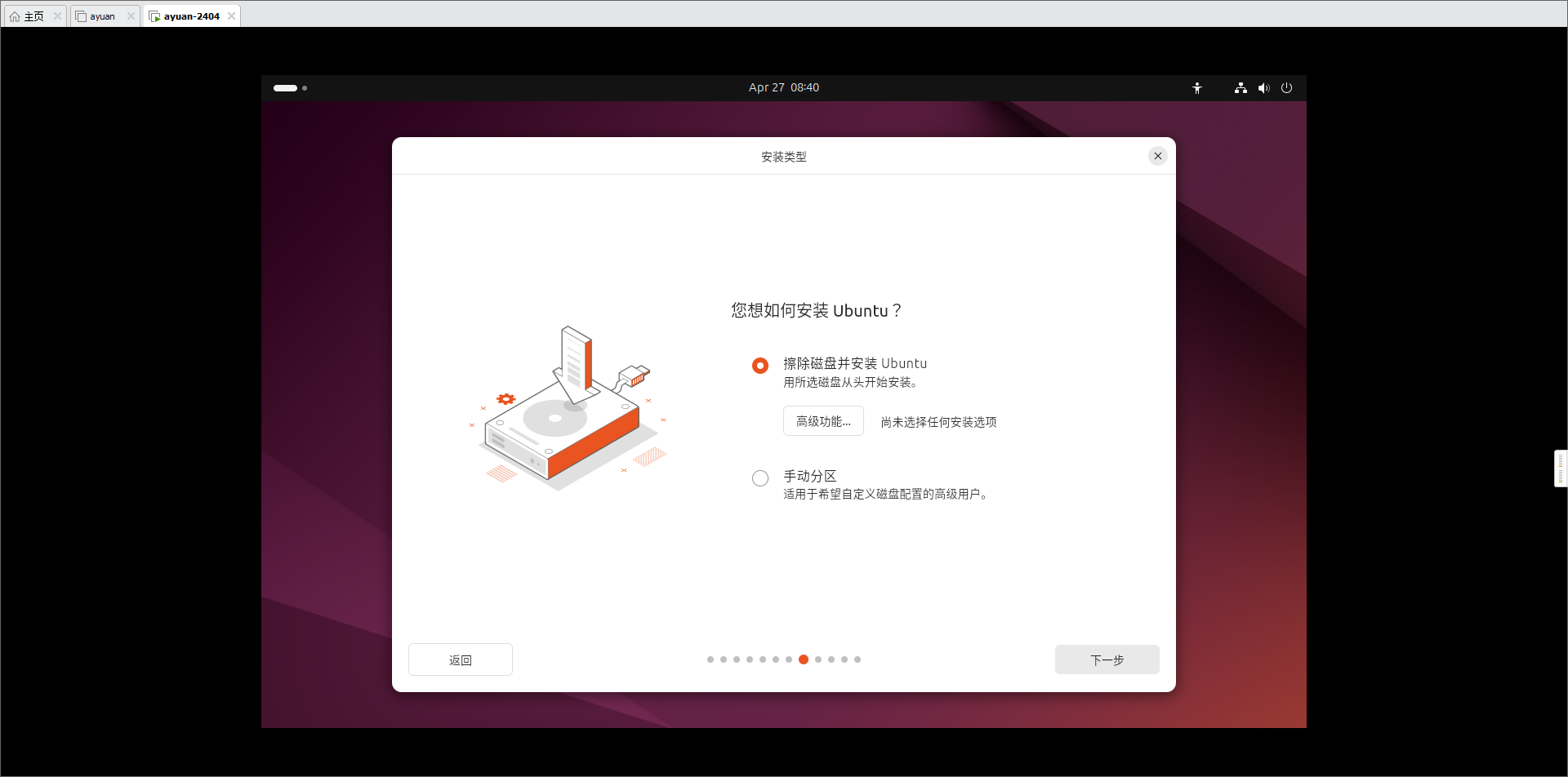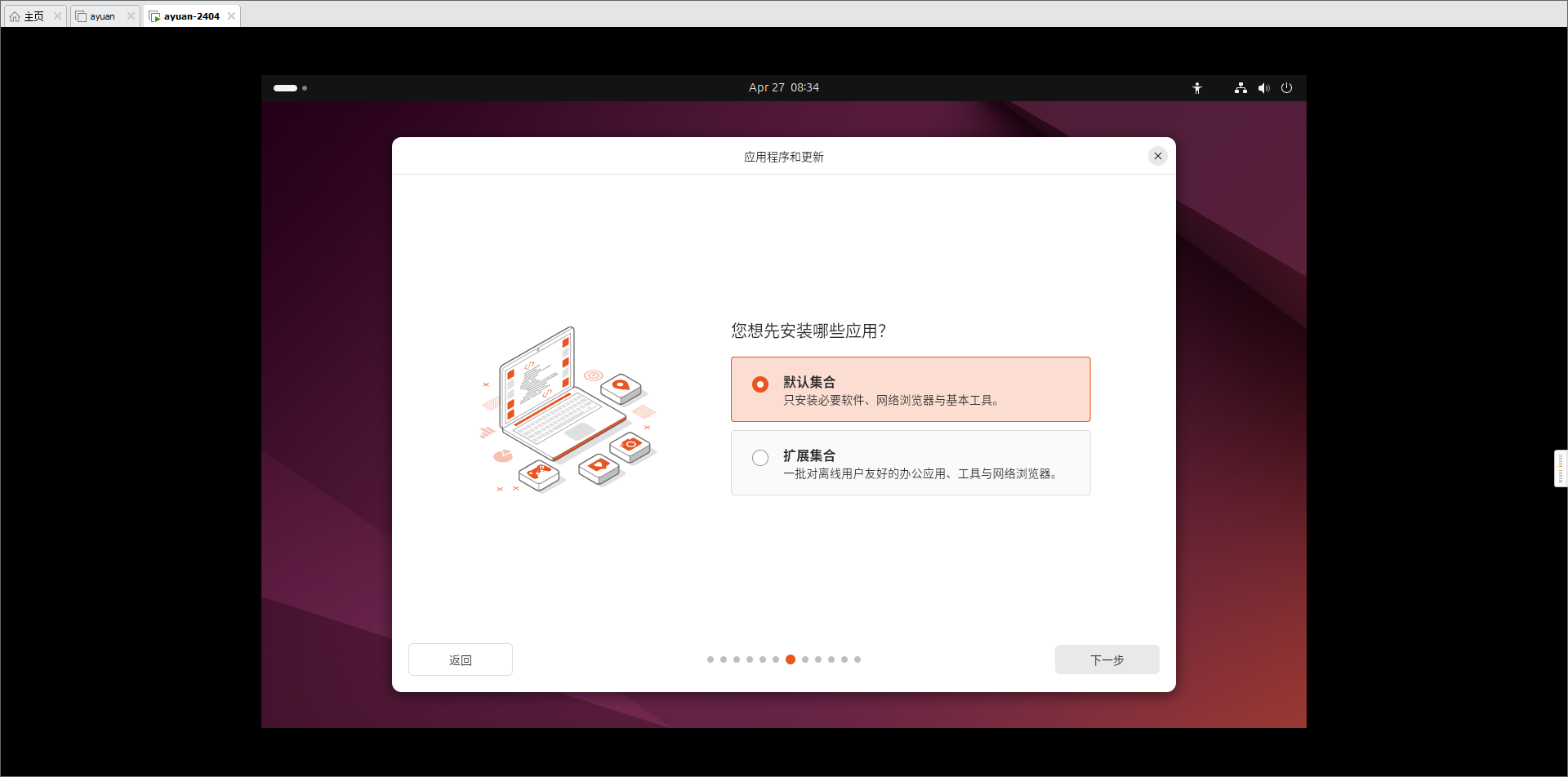 - 进入Ubuntu初始化界面,接下来是一系列的初始化选项。