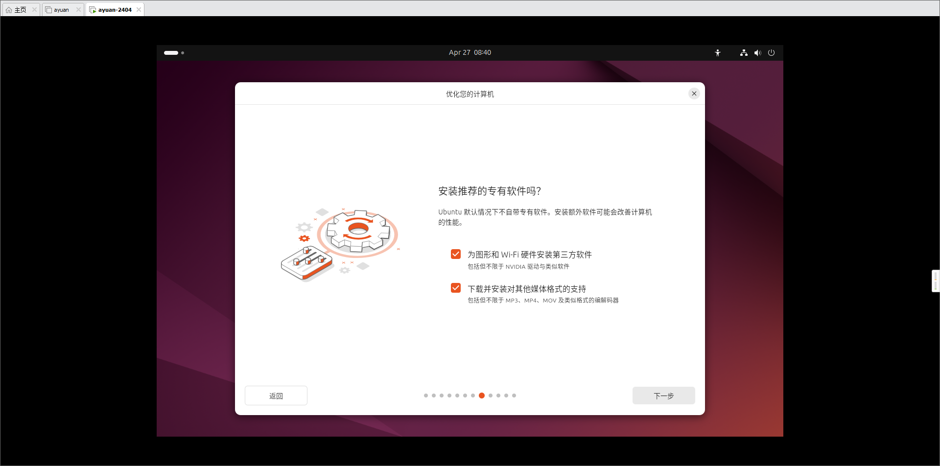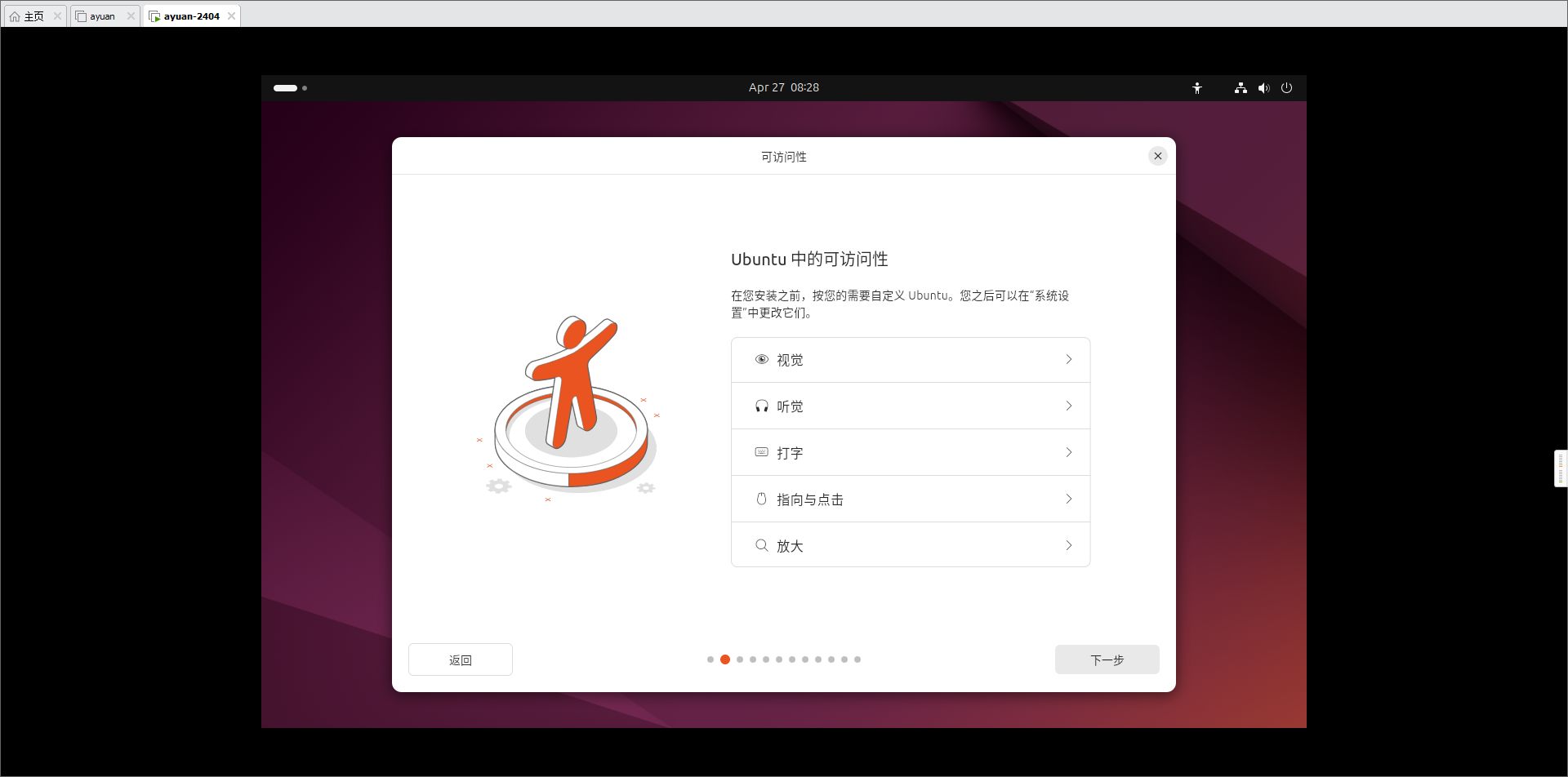 - Ubuntu中的可访问性,保持默认,下一步。