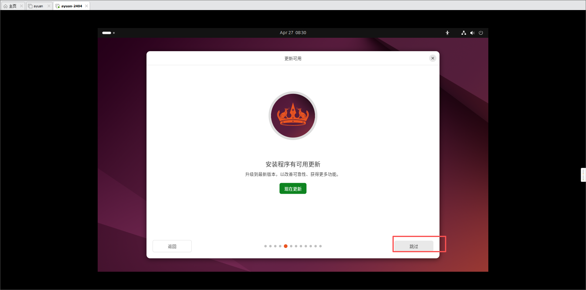 - 安装可用更新:跳过。