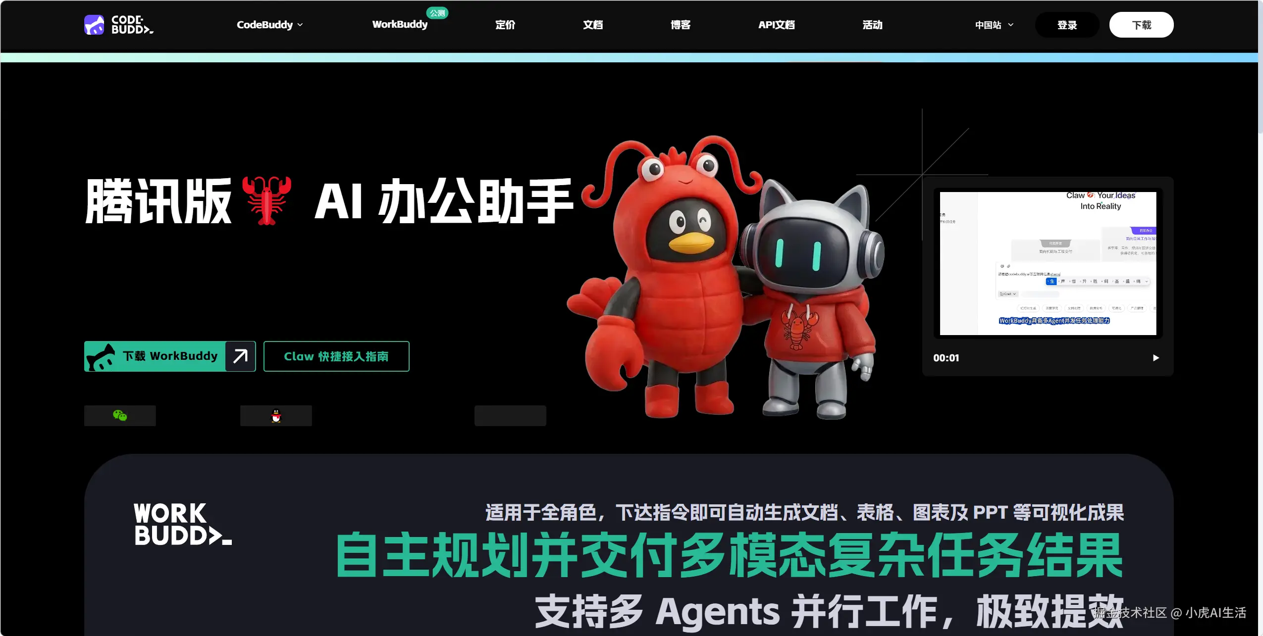 一是 WorkBuddy,腾讯出的 AI Agent 工具,https://workbuddy.tencent.com 下载,微信登录。