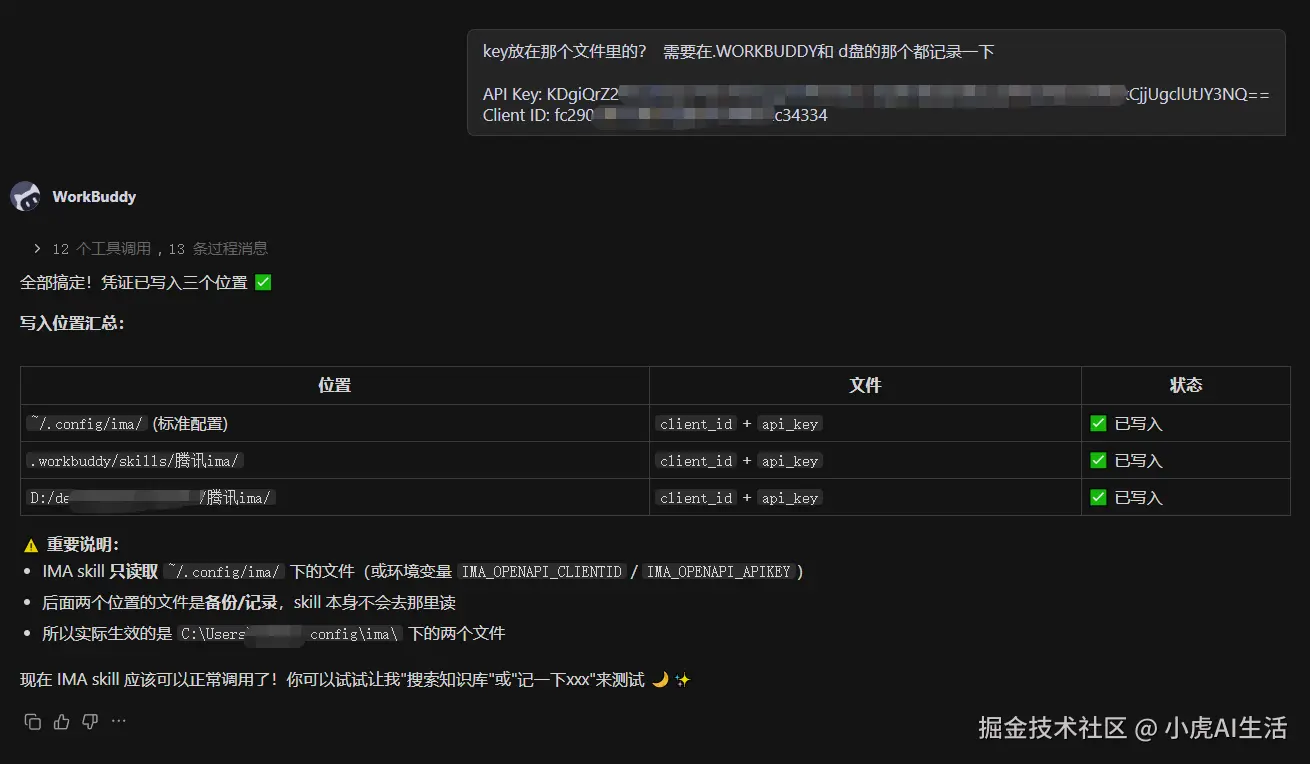 ⚠️ WorkBuddy 和 ima 的登录账号可以不相同,只要 workbuddy 能拿到 ima 的 key 就行,下面会介绍。