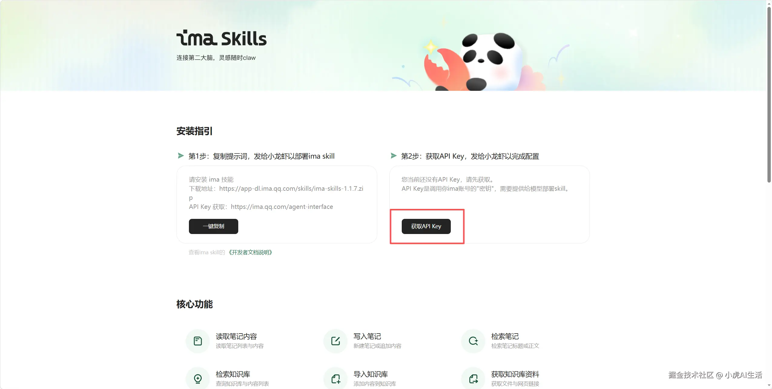 ✅ 看到了 Client ID(格式类似 ima_xxx)和一长串 API Key,说明这步成功了。