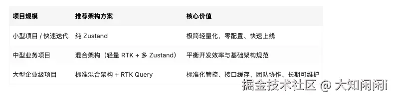 前端状态管理不存在万能方案,最优架构永远是场景适配优先 。Redux Toolkit 与 Zustand 的混合架构,打破了单一状态库的能力壁垒,构建起「业务强约束、UI 高灵活」的分层状态体系。