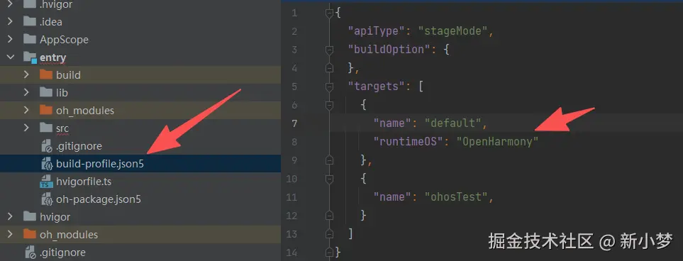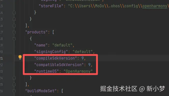 build-profile.json5,默认情况如下,将compileSdkVersion和compatibleSdkVersion移动到products内,并在products添加如下"runtimeOS": "OpenHarmony"