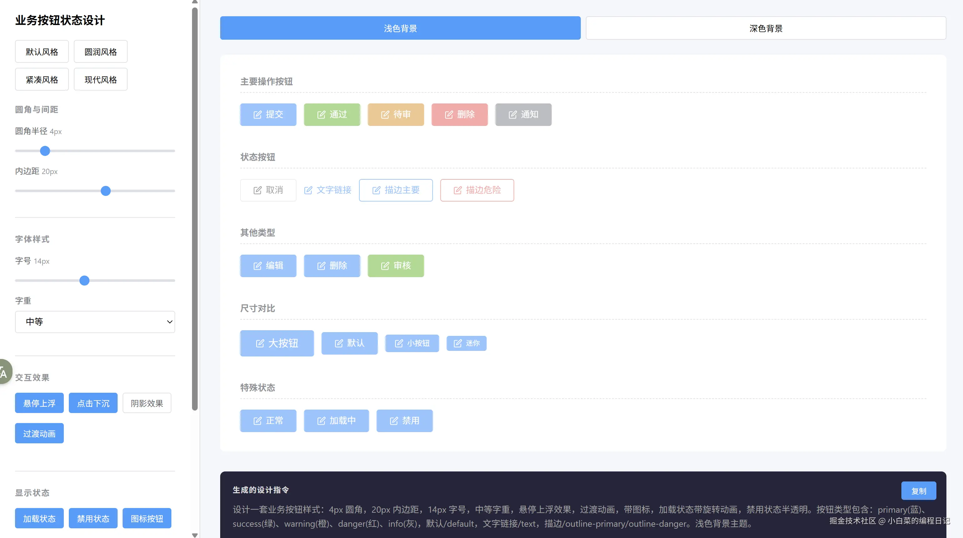 生成各种状态的业务按钮 /playground