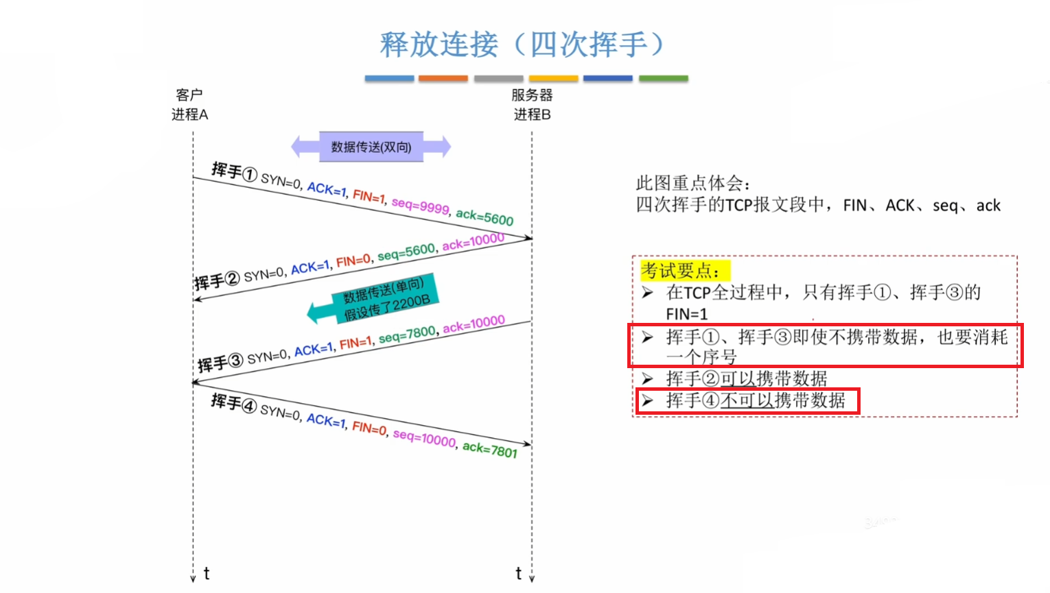 TCP 释放连接阶段和建立连接阶段具有同样的三个考点: