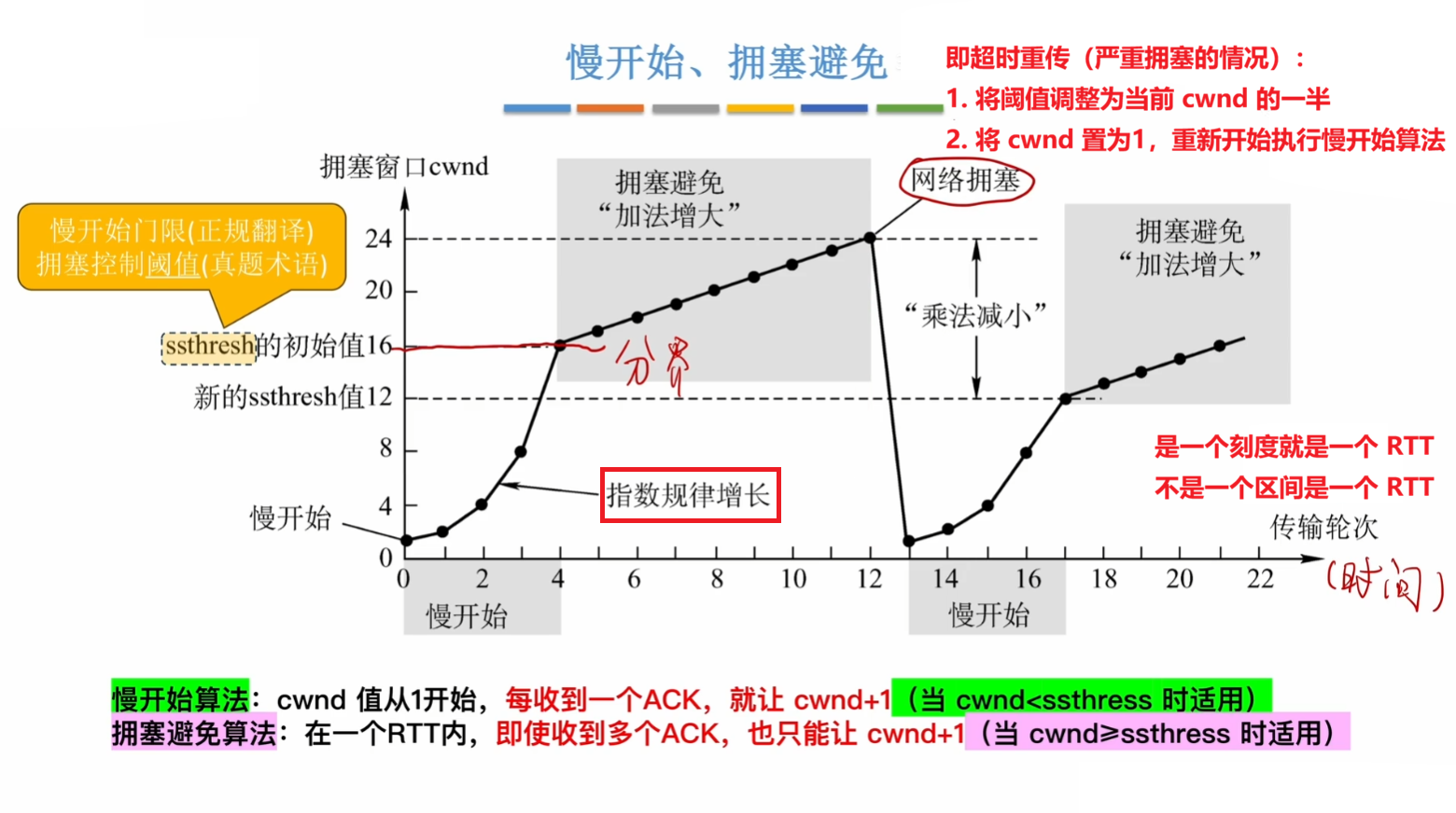 对于 慢开始 和 拥塞避免: