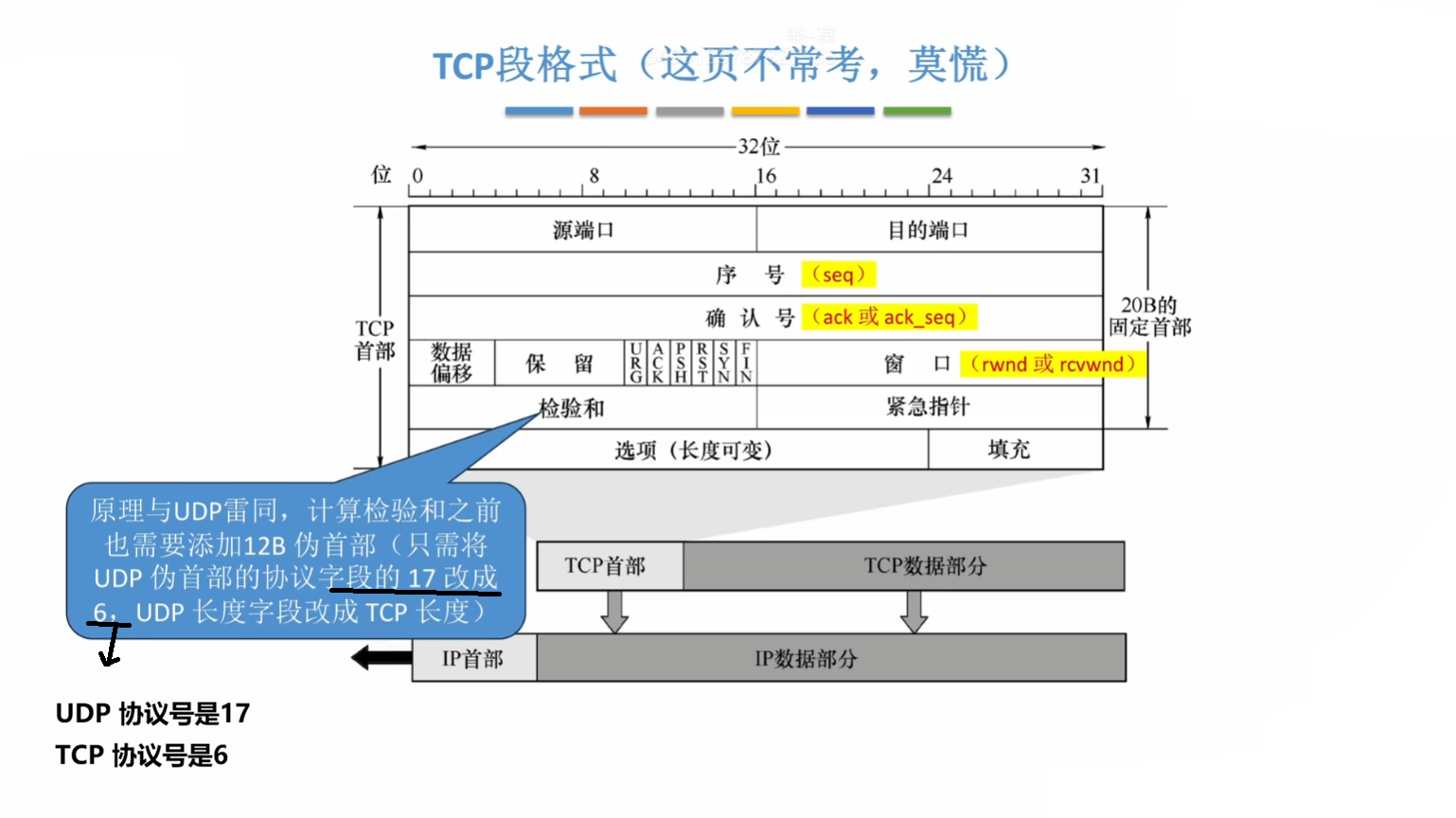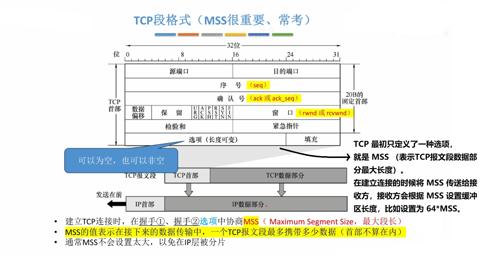 我们需要理解并记住各个 TCP 报文段各个字段的作用,接下来我将从上到下,挨个探讨各个字段:
