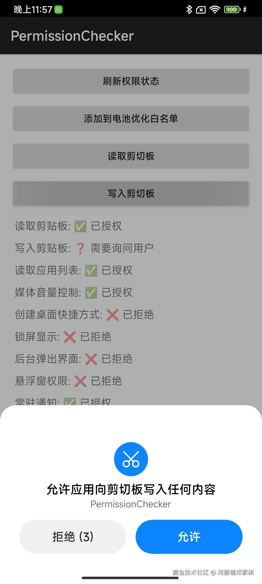 checkSelfPermission方法检测,本文进一步介绍了如何利用AppOpsManager反射调用,通过查询对应OP值,准确获取权限的真实授权状态,为开发者适配MIUI及HyperOS系统提供参考。