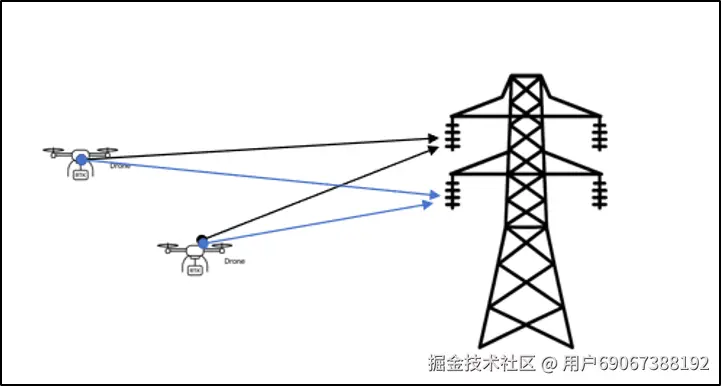 本项目的思路:DJI RTK 无人机在拍摄时已记录厘米级精度的位置(经纬高)与姿态(偏航/俯仰/横滚),结合像素坐标,多视角三角测量可以完整恢复目标的三维坐标。