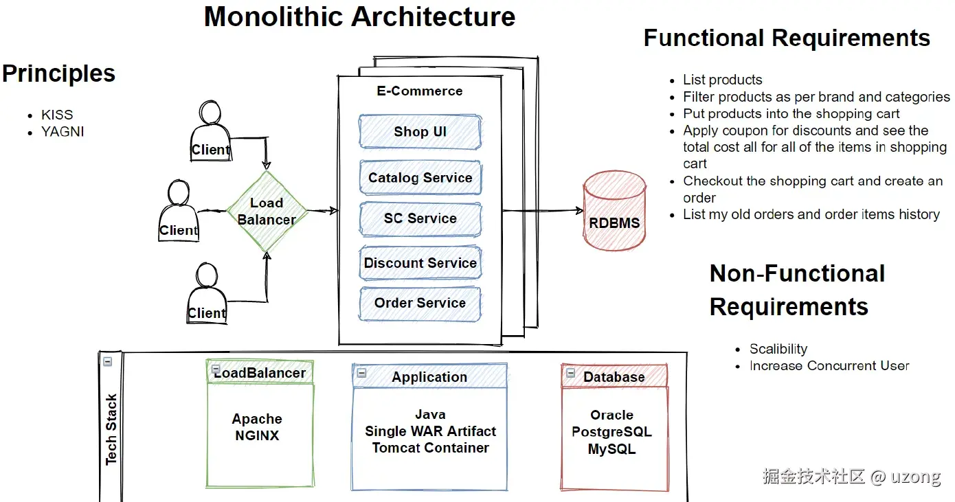 使用单体架构设计了我们的电子商务应用程序,如下: