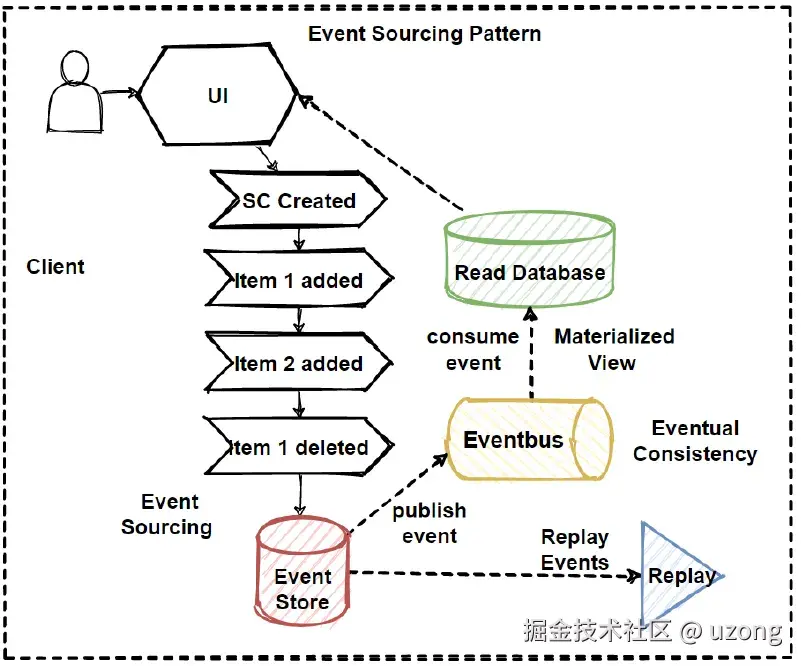 应用事件溯源模式是将数据保存操作转换为数据库。不是在数据库中保留最新的数据状态,事件溯源模式提供在数据库中按数据事件顺序保存所有事件。