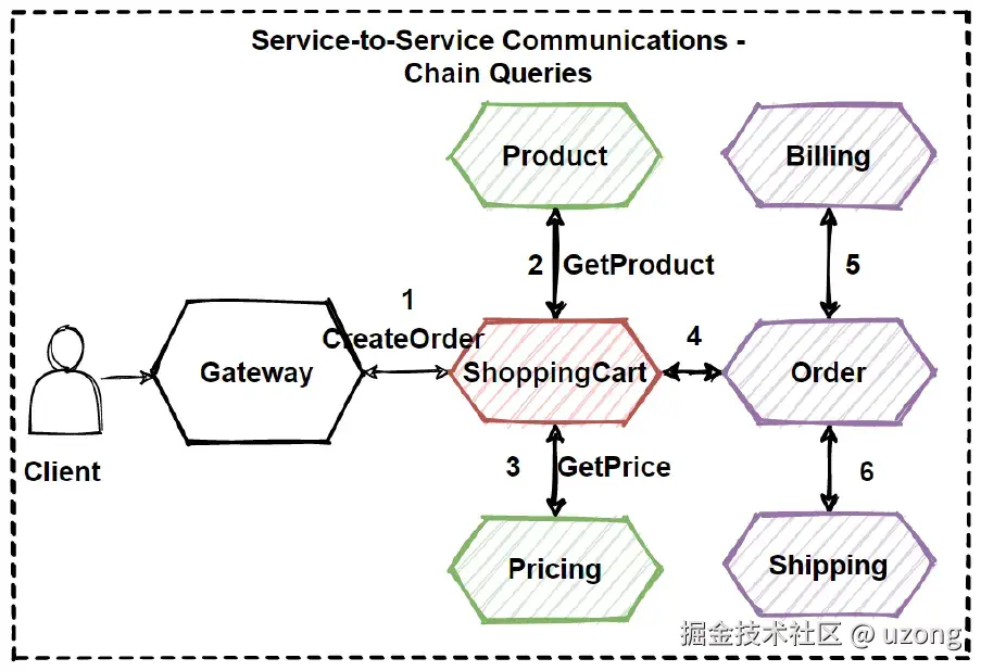 如我们所见,一个客户端 HTTP 请求需要六个同步 HTTP 请求。因此,很明显它增加了延迟,并对我们系统的性能、可扩展性和可用性产生负面影响。