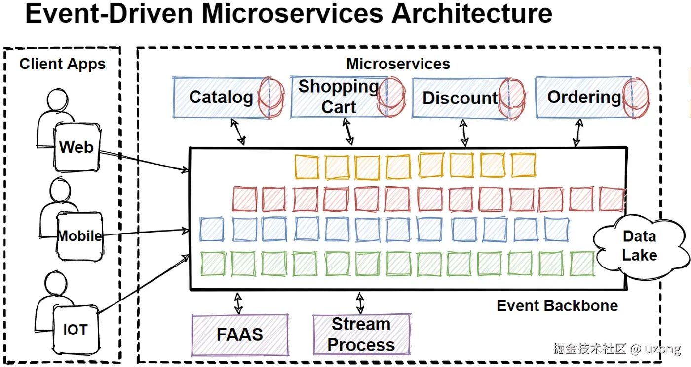此外,事件驱动的微服务架构还有很多创新,如使用实时消息平台、流处理、事件中心、实时处理、批量处理、数据智能等。
