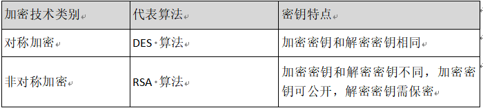 | 加密技术类别 | 代表算法 | 密钥特点 |