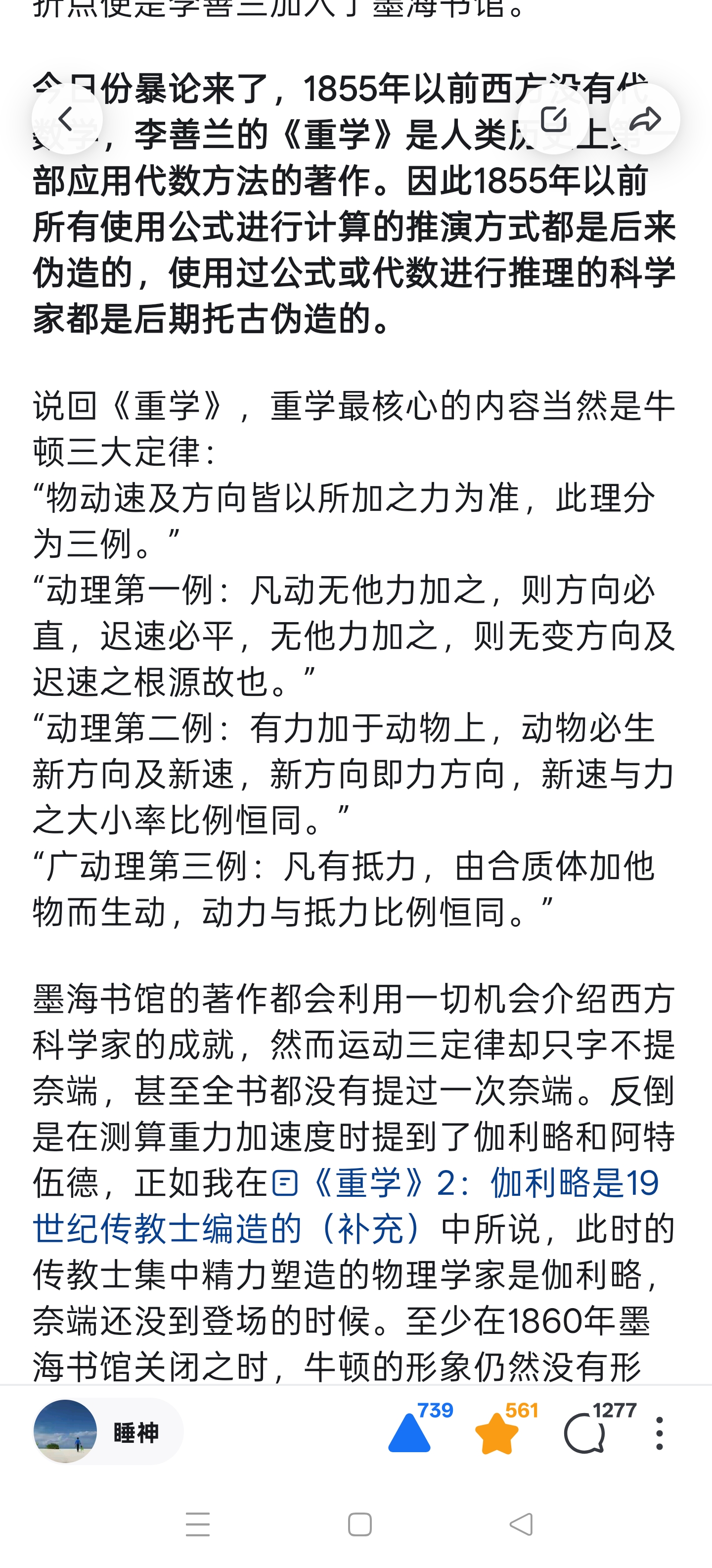 李善兰和牛顿,谁剽窃谁的运动三定律